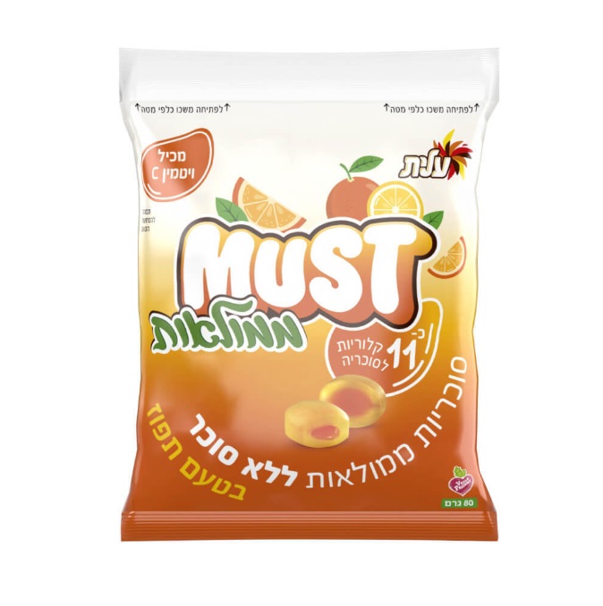 Product Name In Hebrew: עלית מאסט סוכריות ללא סוכר בטעם תפוז ויטמין סי ממולאות
